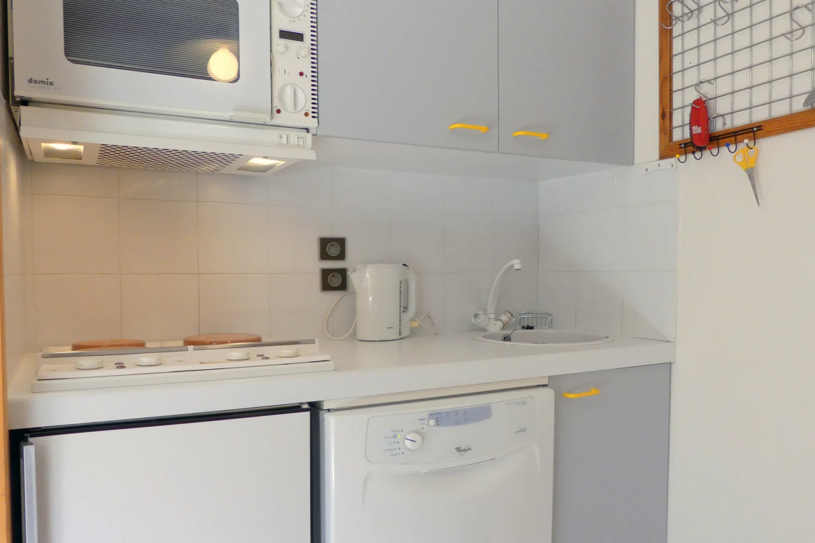 Кухня : духовка/грилль, микроволновая печь, холодильник, посудомоечная машина, 4 электр. конфорки, вытяжка
