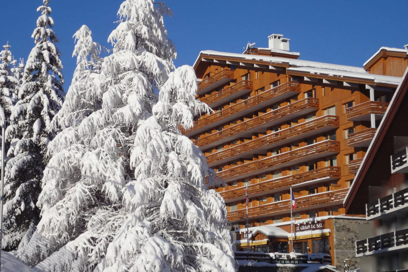 Резиденция Plein Soleil идеально расположена около горнолыжных склонов, а также вблизи коммерческого центра Моттаре.