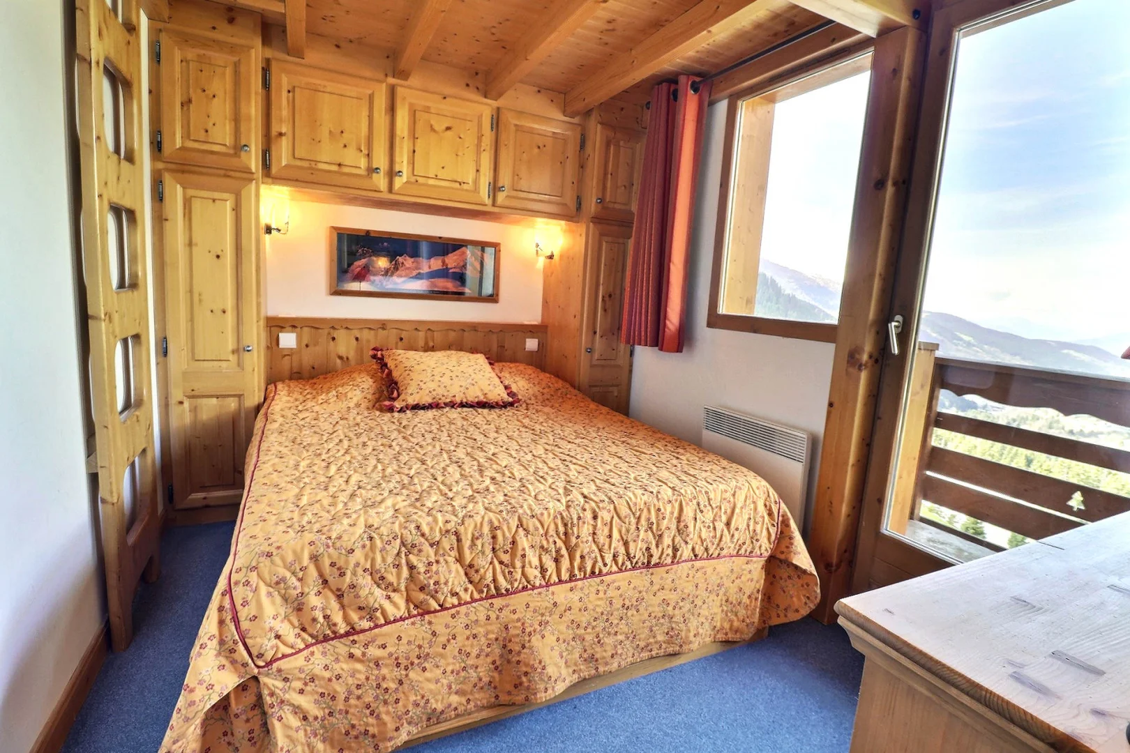 Спальня с мезанином: 1 двуспальная кровать + 2 матраса на мезoнине (очень низкий потолок)