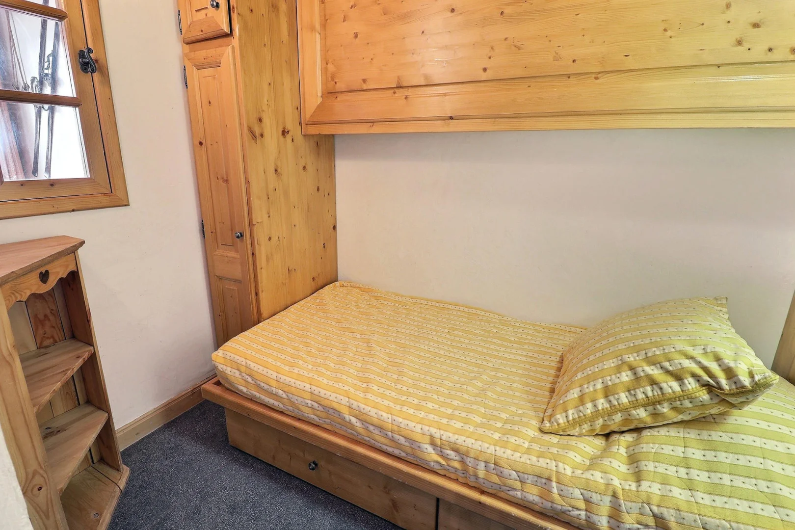 Кабина с окошком на гостиную: двухярусная кровать