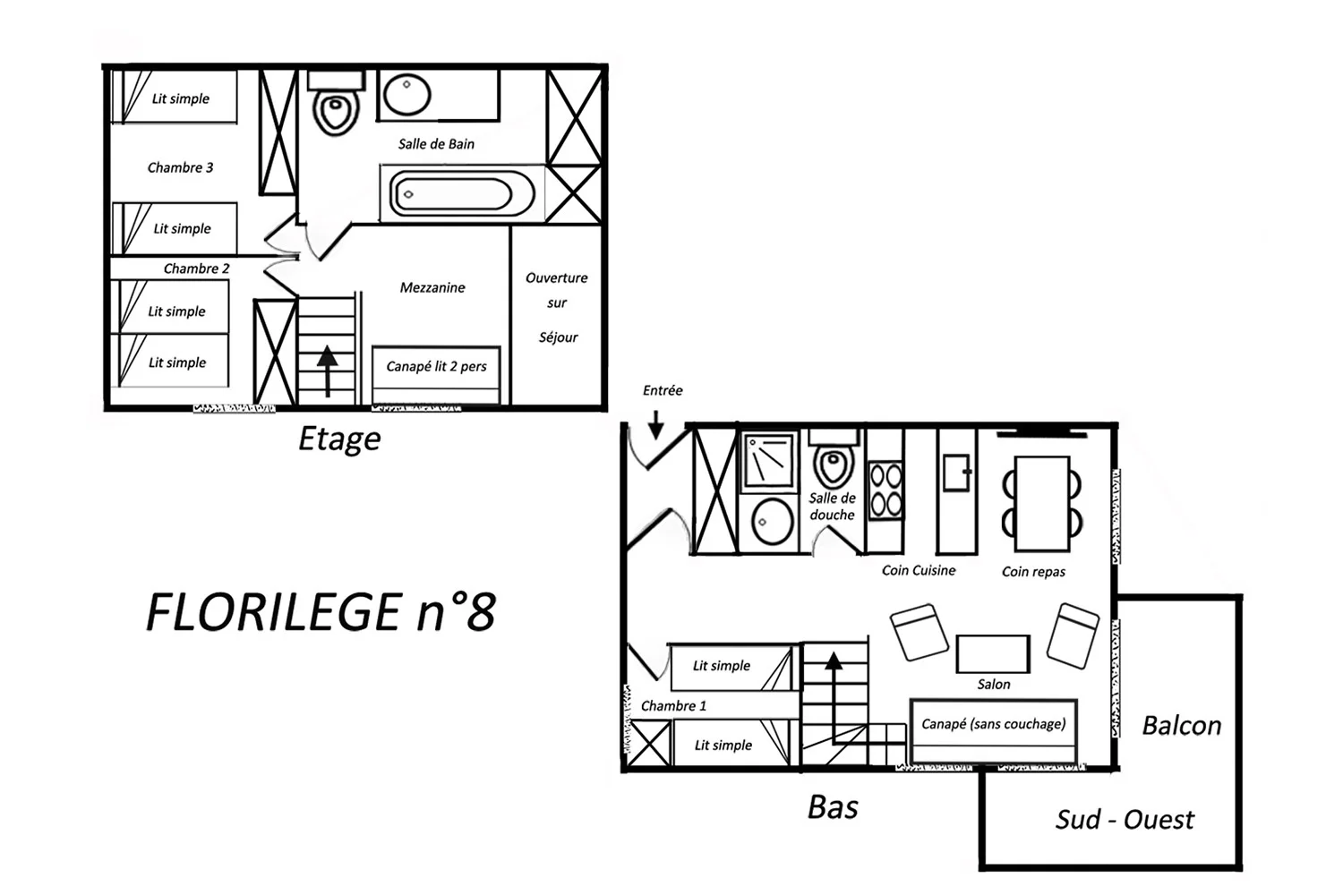 4 комнаты на 2х уровнях, 6/8 чел. , 70m², Южный и Западный балконы, 3 этаж